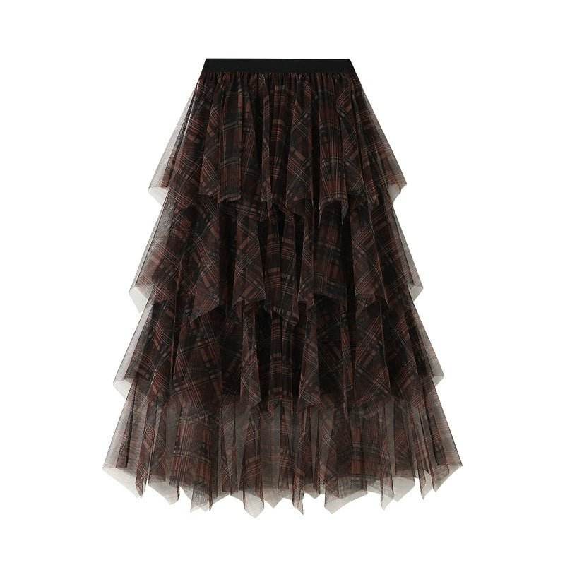 חצאית מקסימלית עם שכבות משובצות ורכות, יוצרת מראה עשיר ודינמי שמשדרג כל הופעה.