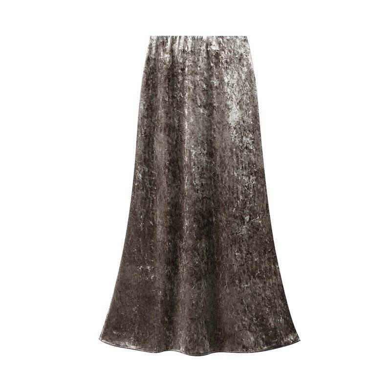 חצאית קטיפה אפורה מנצנצת - Nessiha