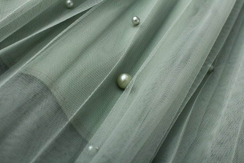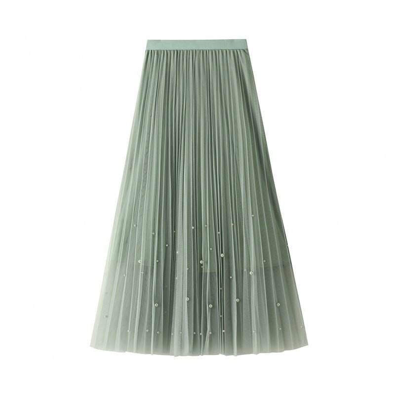 חצאית ורודה מתנפנפת עם פנינים עדינות שמשוות לה מראה אלגנטי ורומנטי לכל אירוע.