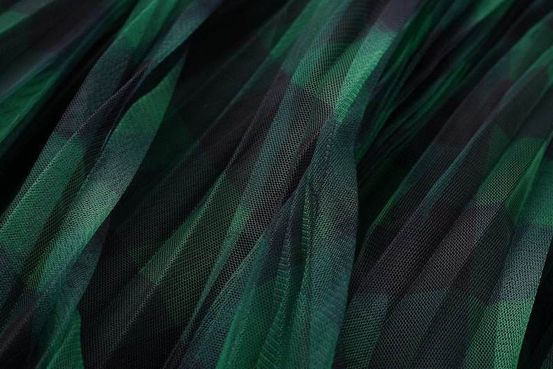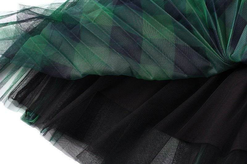 חצאית אלגנטית עם דוגמת משבצות אדומה-שחורה ושכבות טול קלילות, ליצירת מראה ייחודי ויוצא דופן. מתאימה למראה יום-יומי או לערב מיוחד.