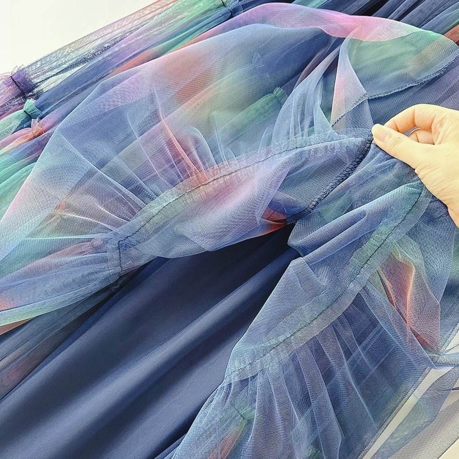 חצאית שכבות אוורירית ומרהיבה בצבעי קשת זוהרים, מושלמת להופעה יוצאת דופן שמושכת תשומת לב. מתאימה לאירועים מיוחדים או ליצירת לוק ייחודי ביום יום.