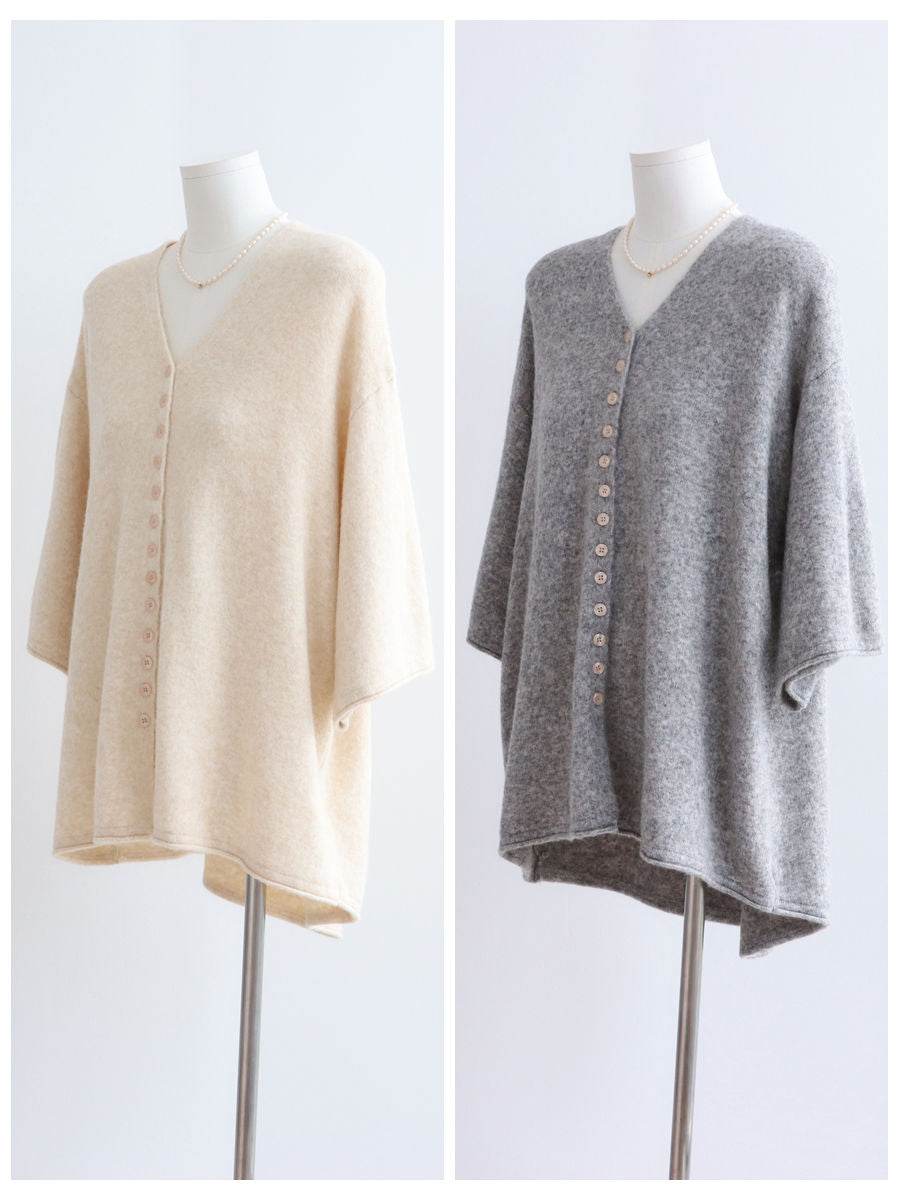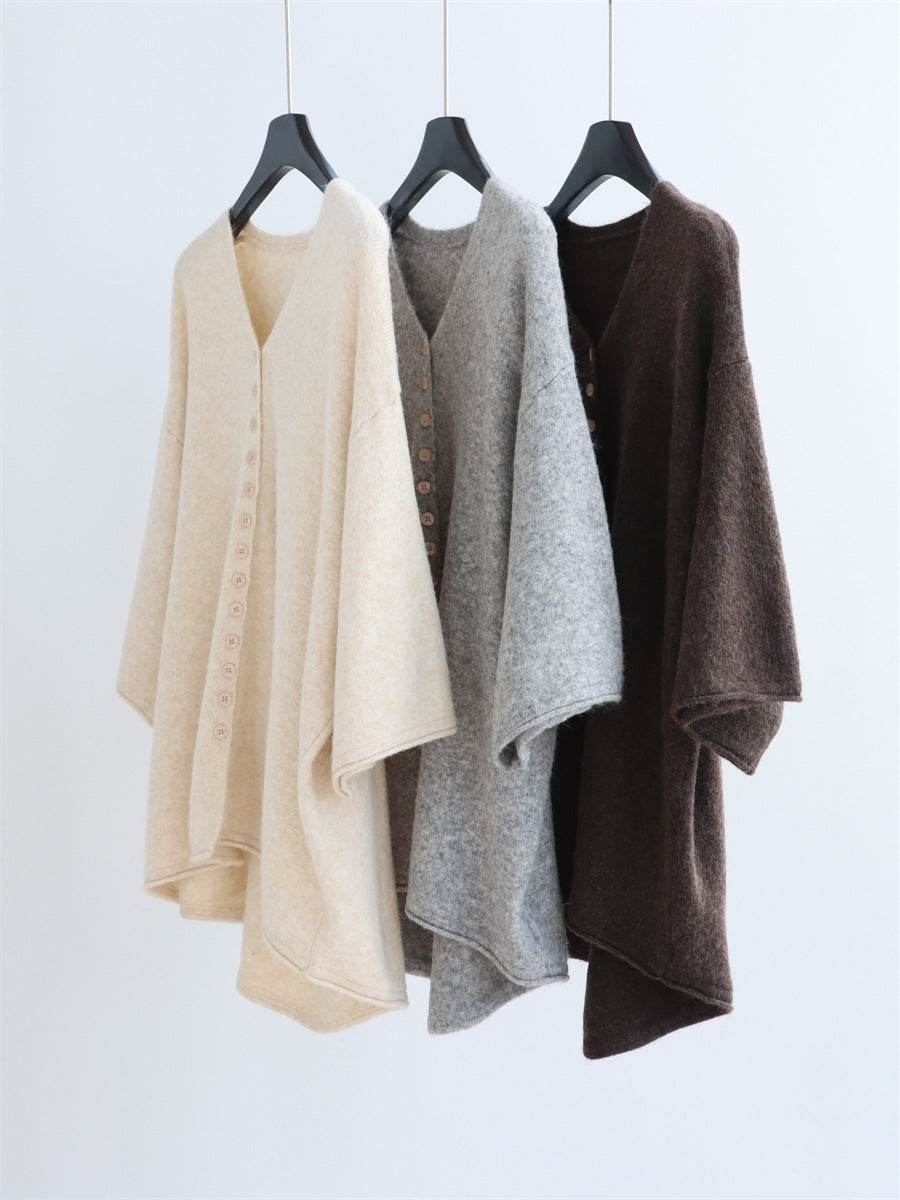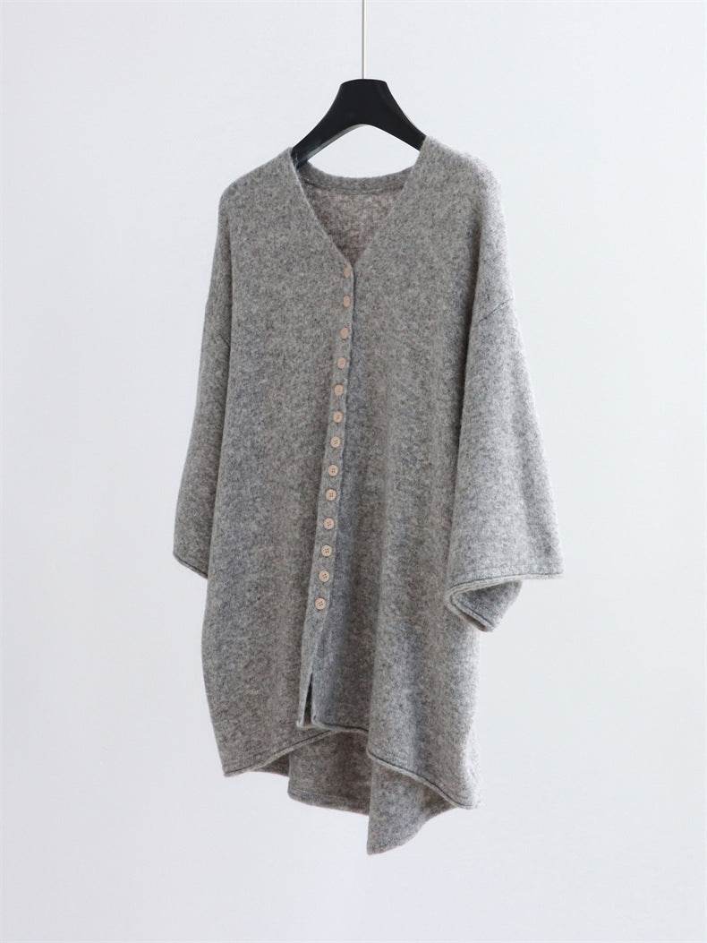 קרדיגן אפור רך בגזרת מעטפת רחבה
