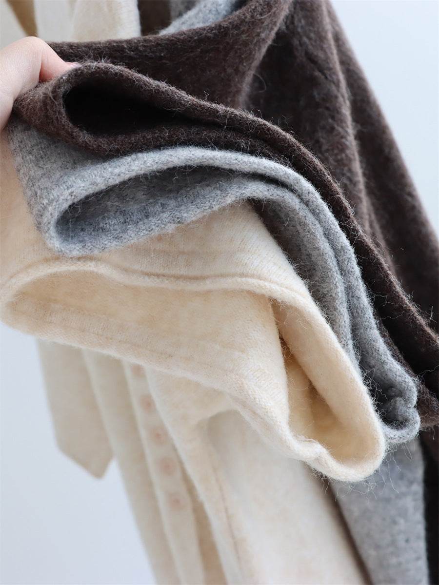 קרדיגן עשיר במרקם רך ונעים עם תערובת צמר איכותית, בגוון אפור קלאסי. גזרה רחבה ונשפכת עם כפתורים לכל האורך – שילוב מושלם של נוחות ואלגנטיות עכשווית.
