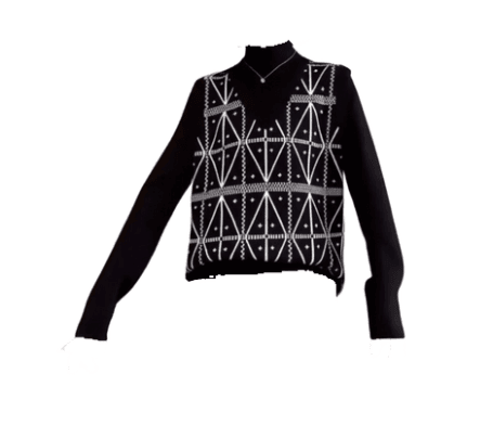 סריג חום עם מחשוף וי ודוגמה גיאומטרית