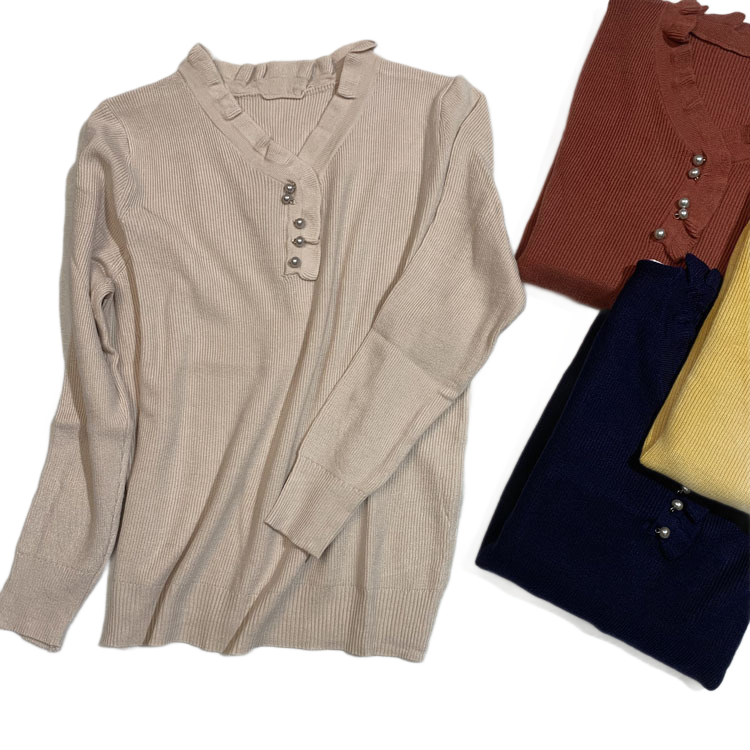 סוודר שמנת עם צווארון פתוח בעיצוב רך