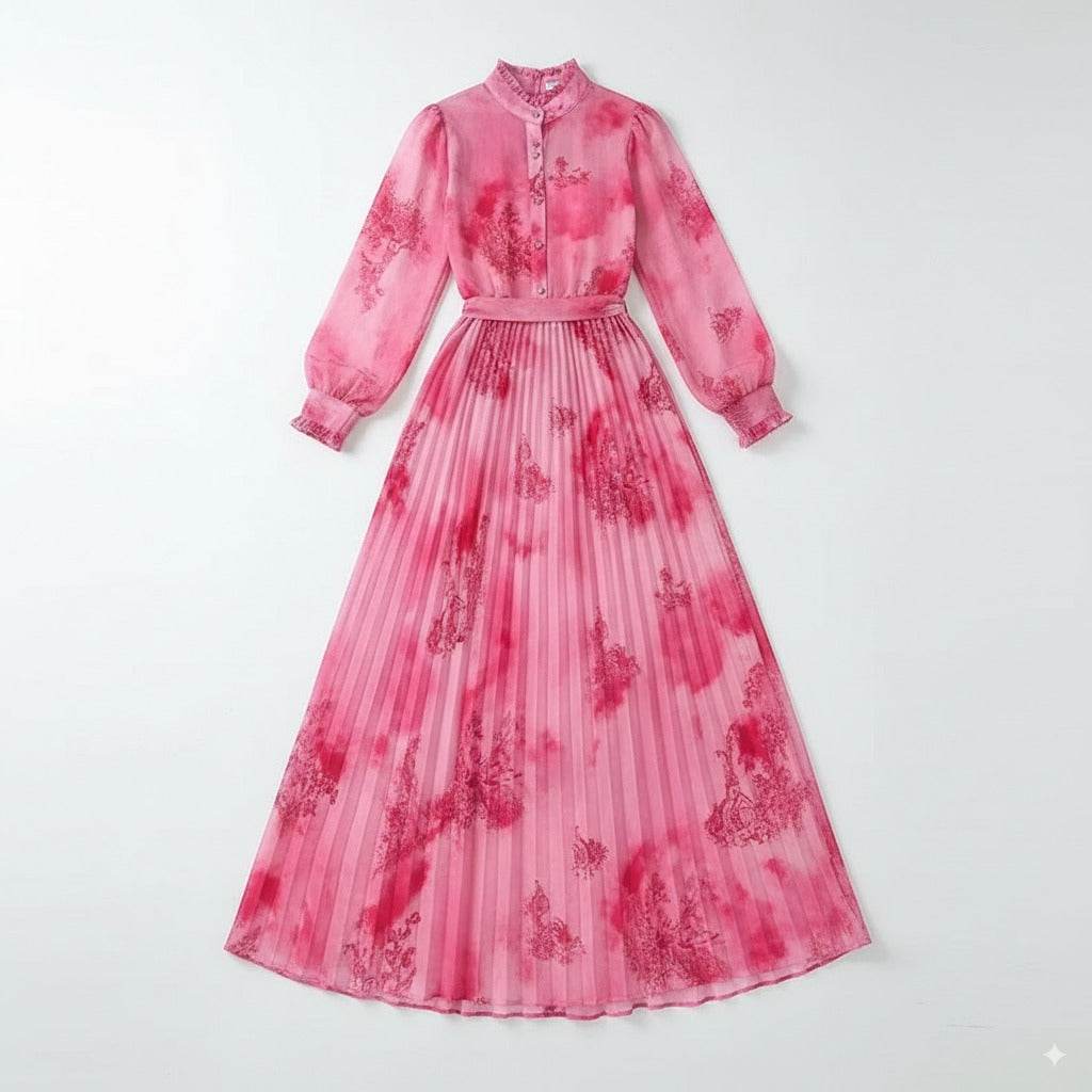 שמלת מקסי פליסה פרחונית בגוון ורוד - Nessiha