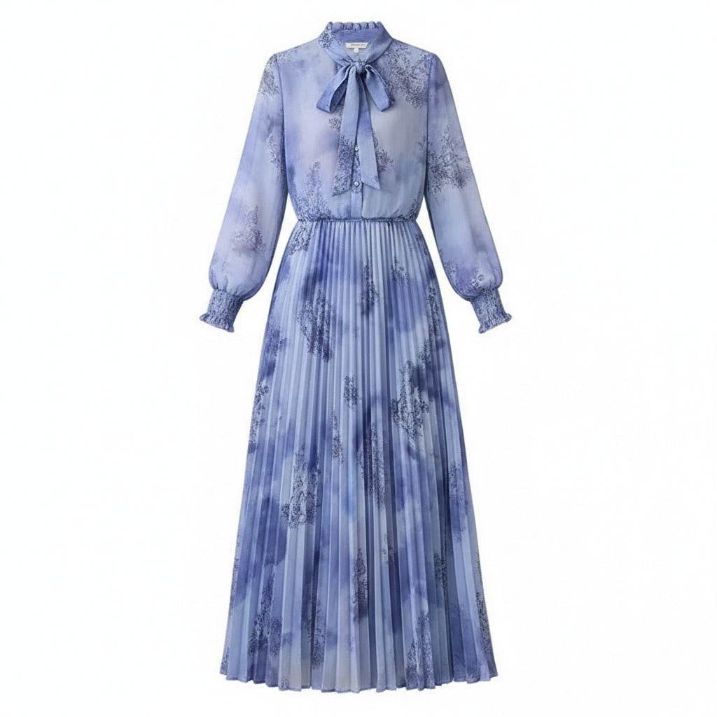 שמלה אלגנטית עם שרוולים ארוכים, גזרה נשית וחגורת מותן מחמיאה – מעניקה מראה רומנטי, קליל ומושלם לכל אירוע.
