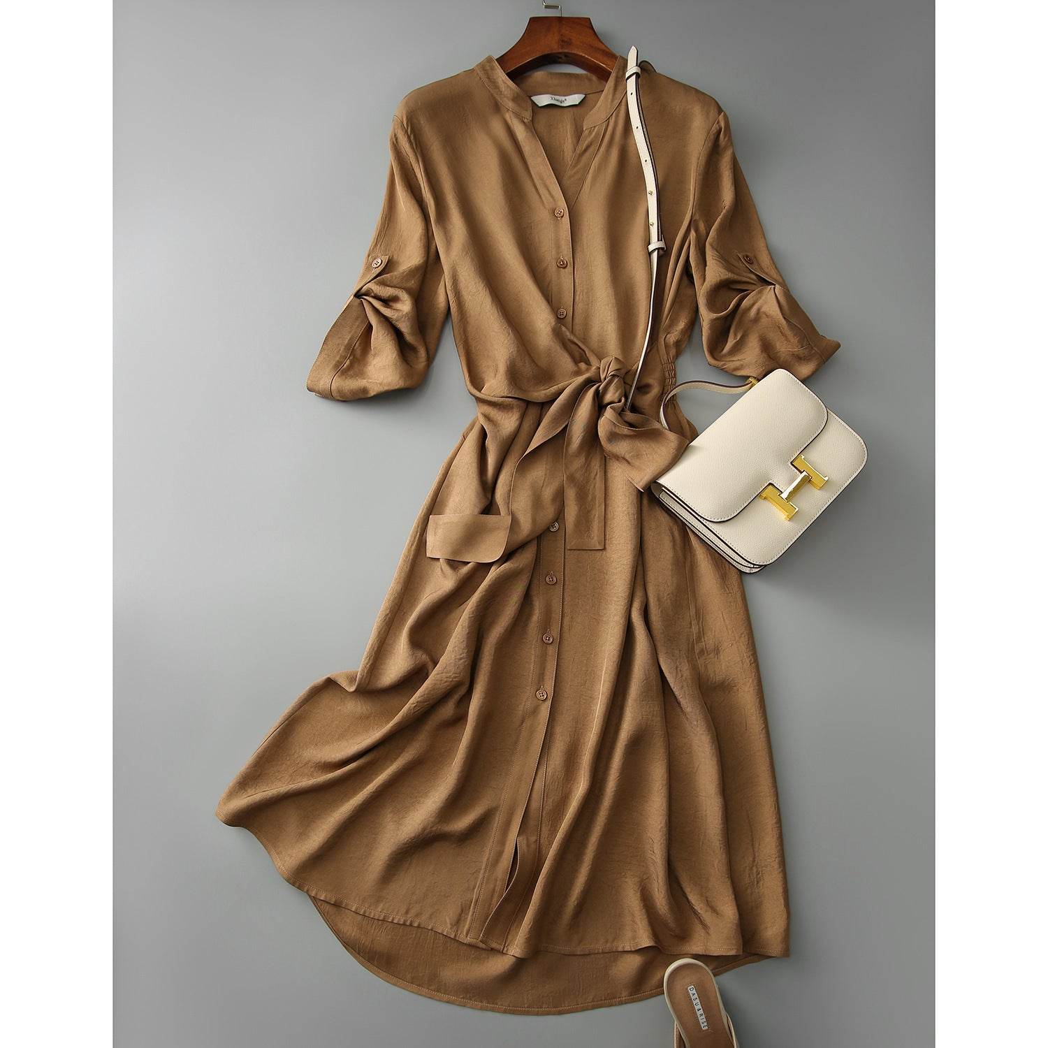 שמלת מעטפת אלגנטית בגוון כחול כהה