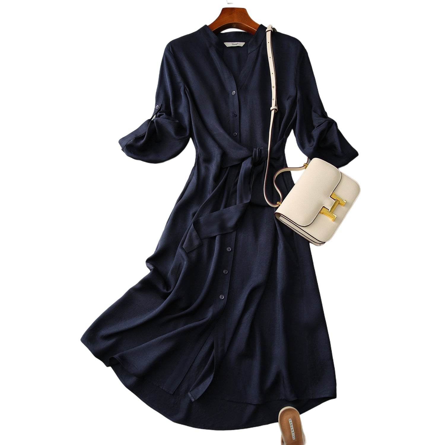 שמלת מעטפת אלגנטית בגוון כחול כהה - Nessiha