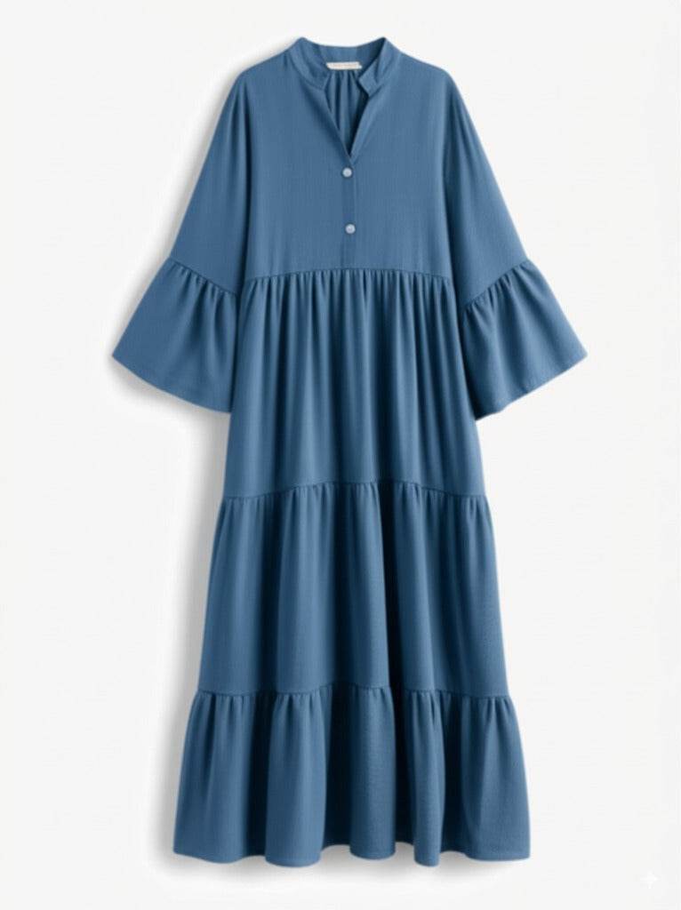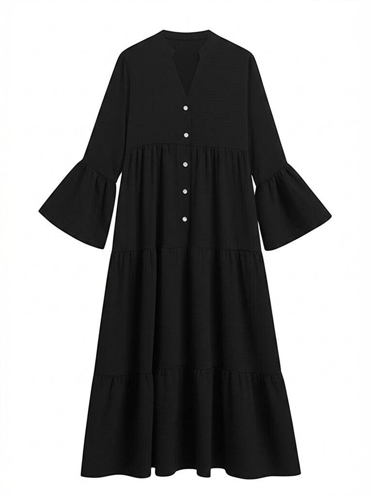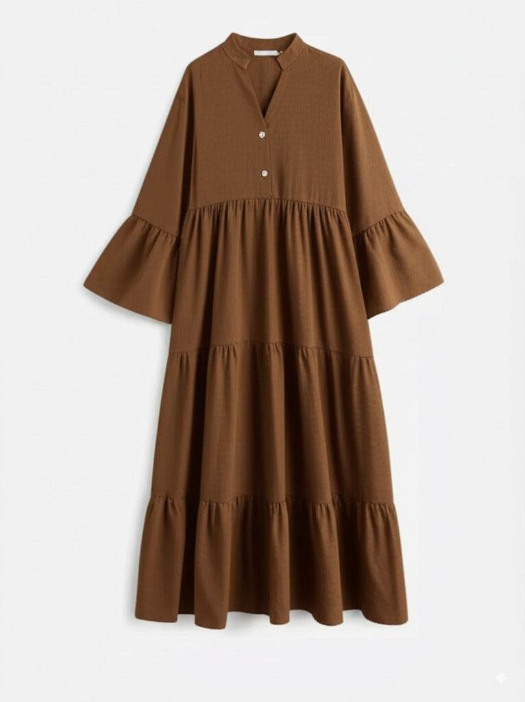 שמלה קלילה בגזרת אוברסייז עם כפתורים בחזית ושרוולים ארוכים מתרחבים, למראה רענן, נוח ומלא שיק טבעי. ✨