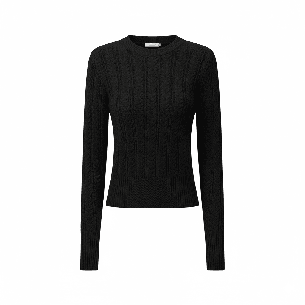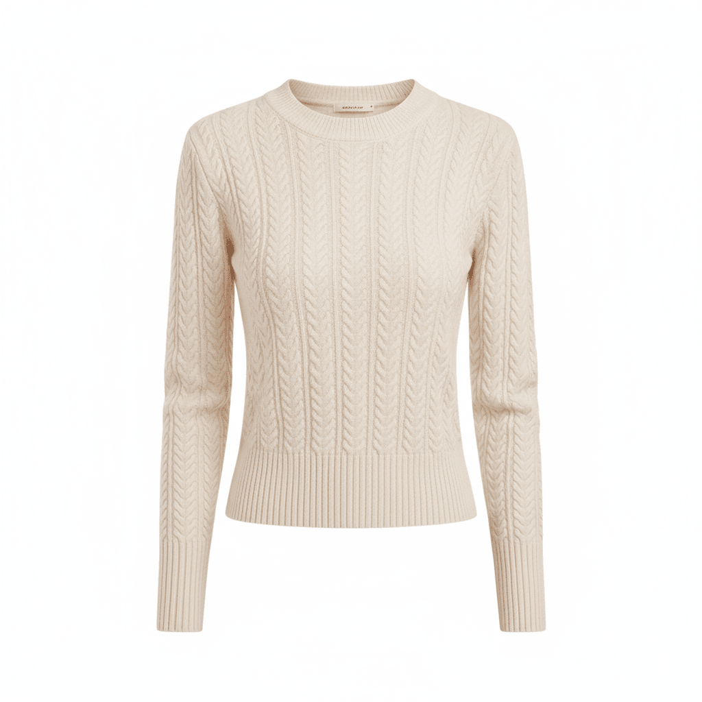 סריג רך ונעים למגע, בגזרה נשית קלאסית עם דוגמת קליעה עדינה. מושלם לשילוב עם חצאית או מכנס אלגנטי למראה חורפי חמים ומוקפד.