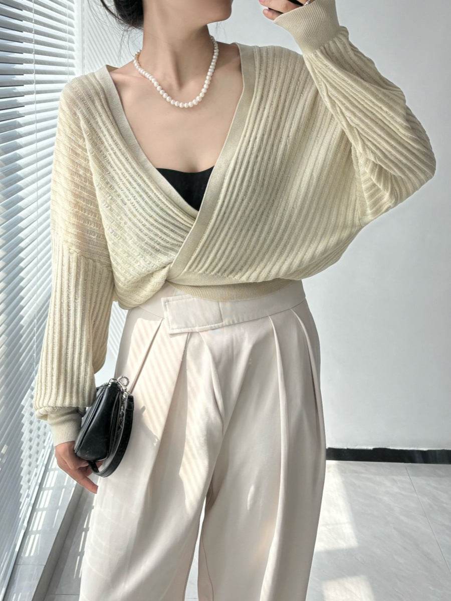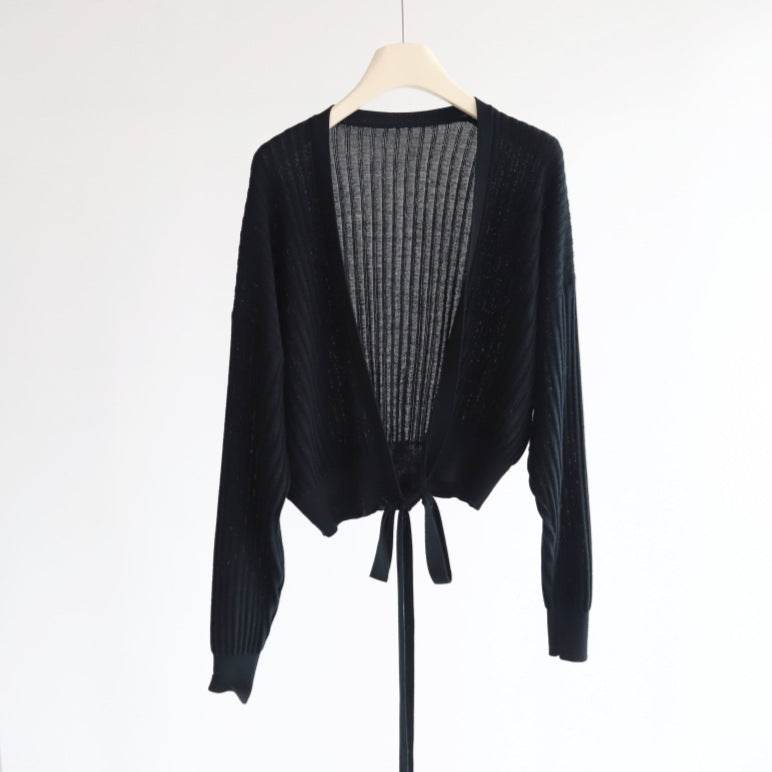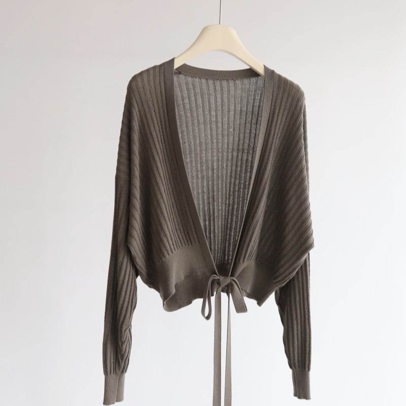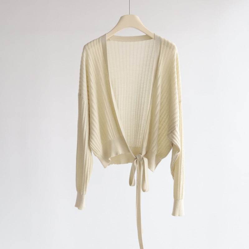 קרדיגן סריג רך עם קשירה עדינה - Nessiha