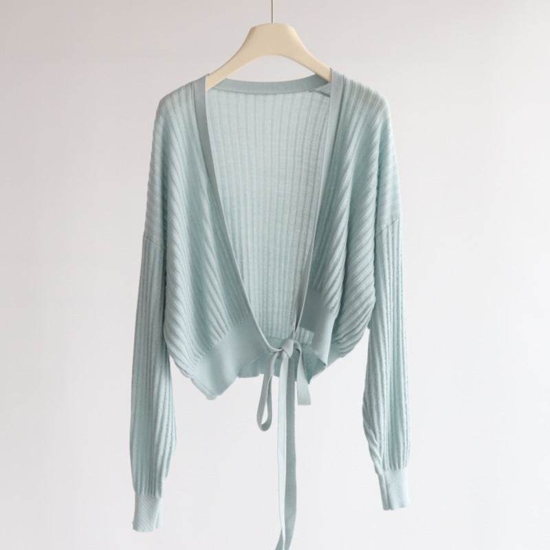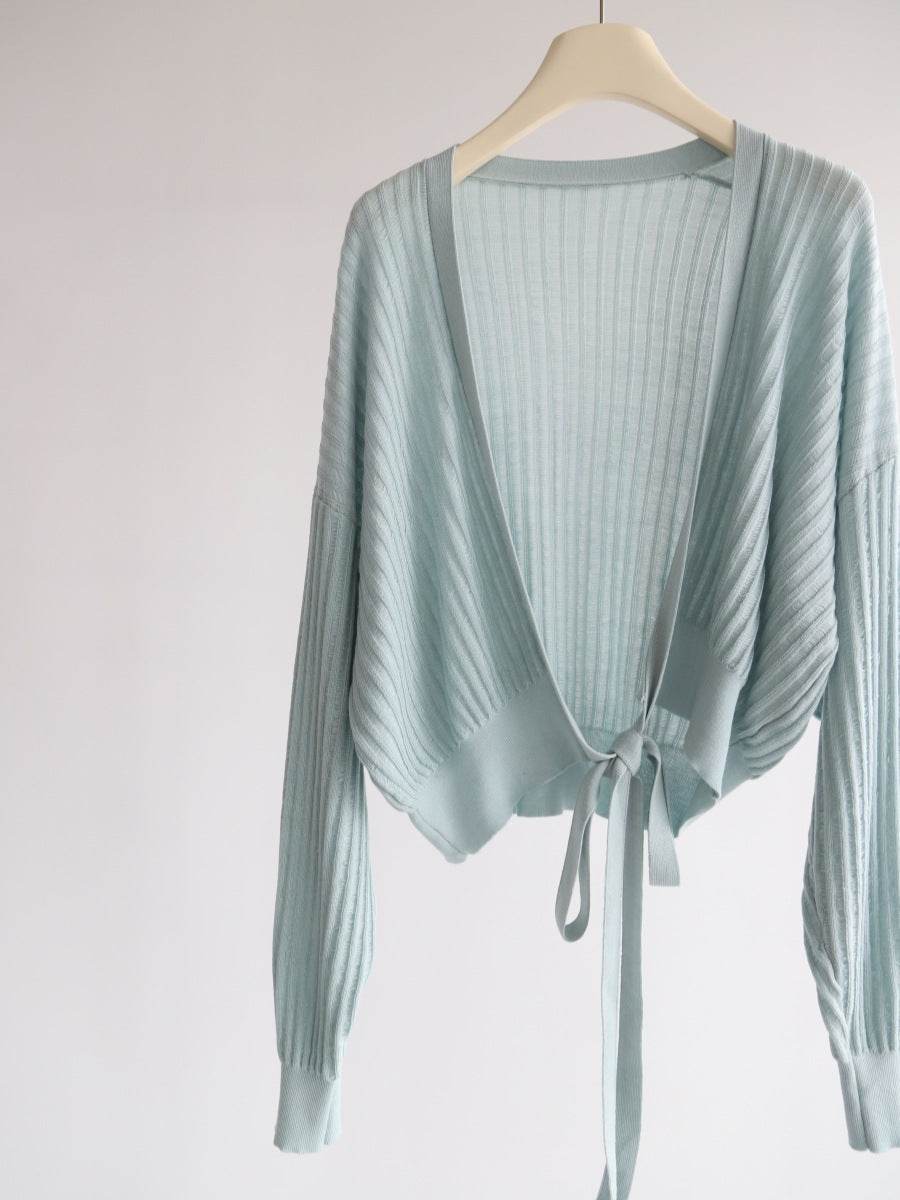 קרדיגן סריג רך עם קשירה עדינה