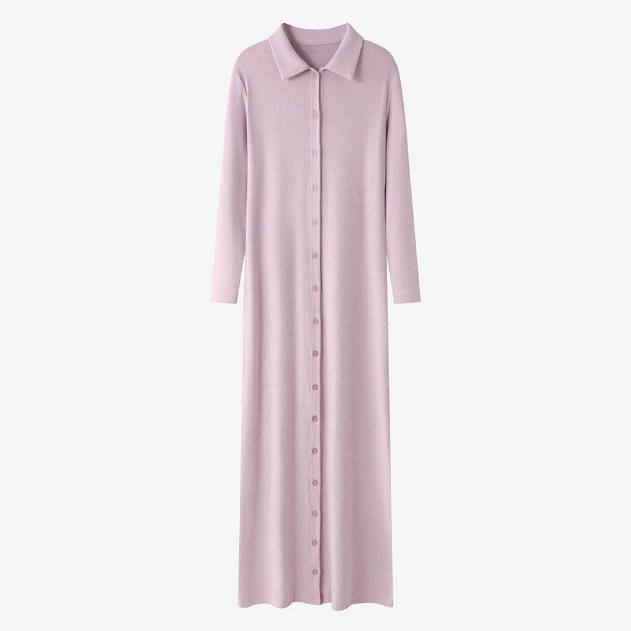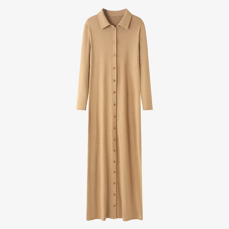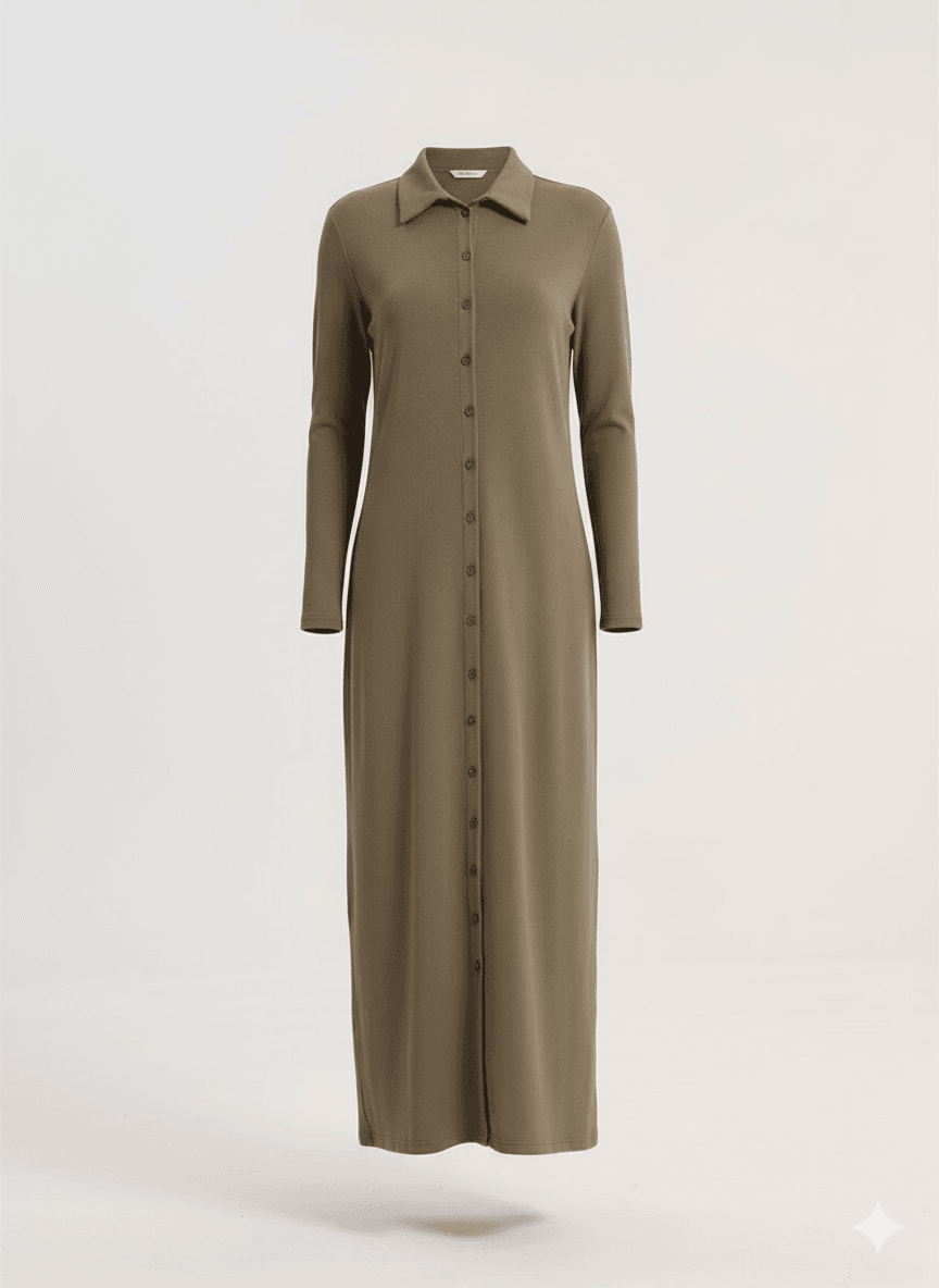 שמלה ארוכה בגזרת חולצה קלאסית עם כפתורים לכל האורך, עשויה מבד נעים ורך למגע – מעניקה מראה צנוע, מחמיא ונינוח לכל שעות היום