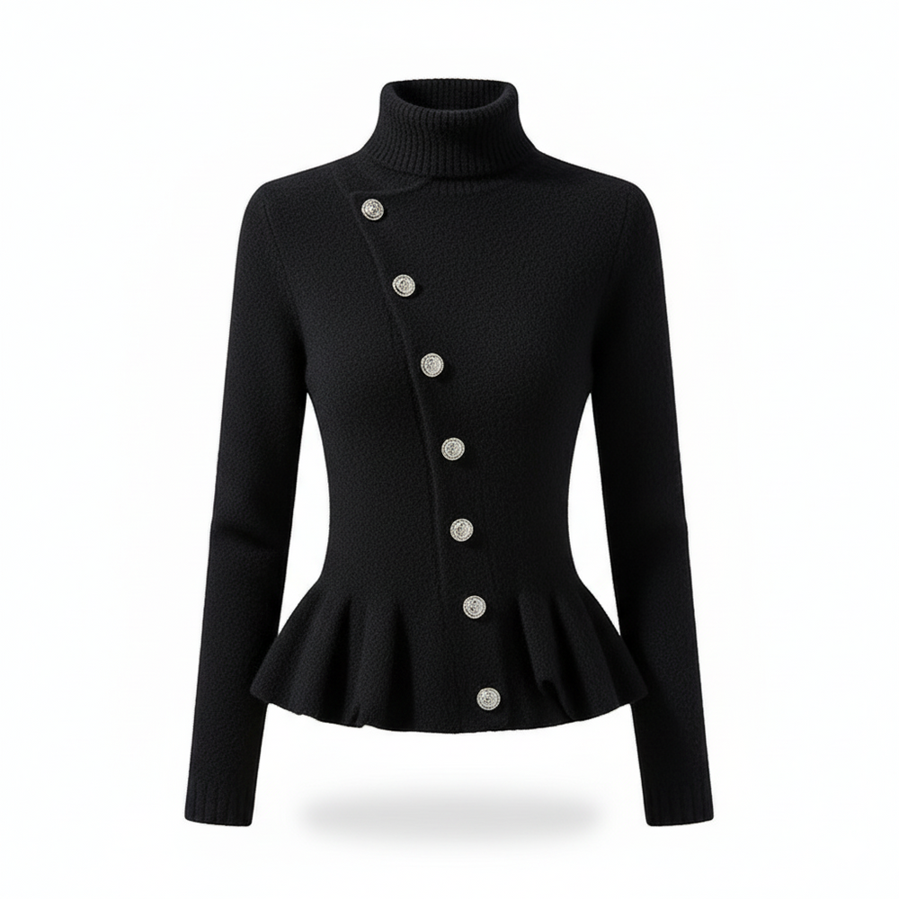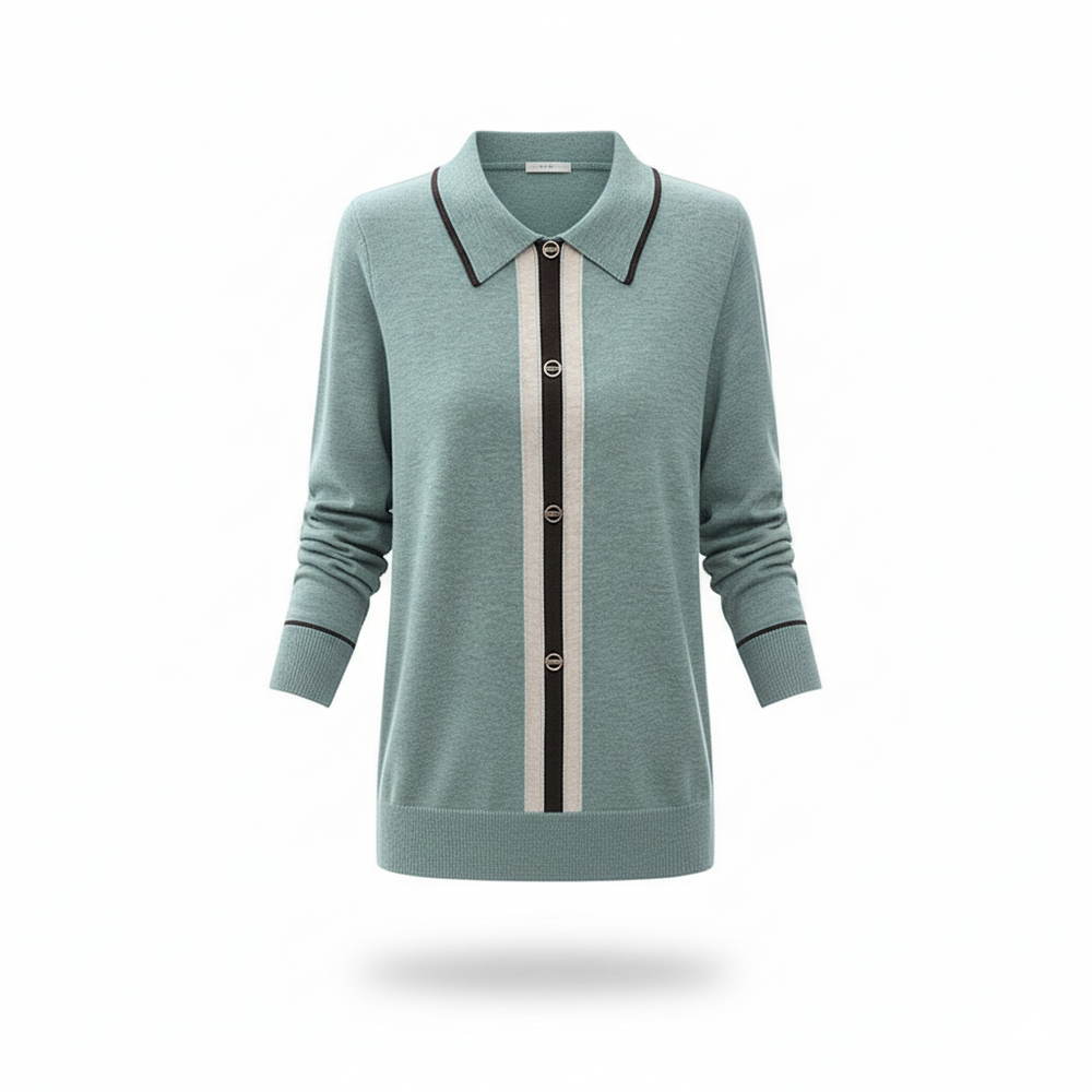 סריג ירוק עם כפתורים דקורטיביים וגזרה מחטבת