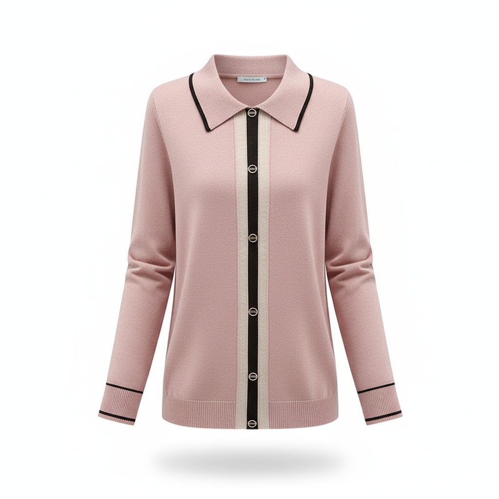 סריג ורוד עם צווארון ופסים דקורטיביים