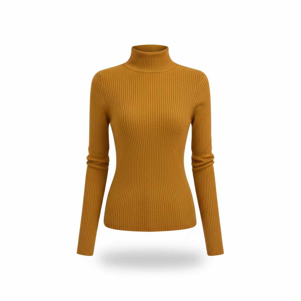 סריג דק בצבע בז׳ בהיר עם צווארון גבוה