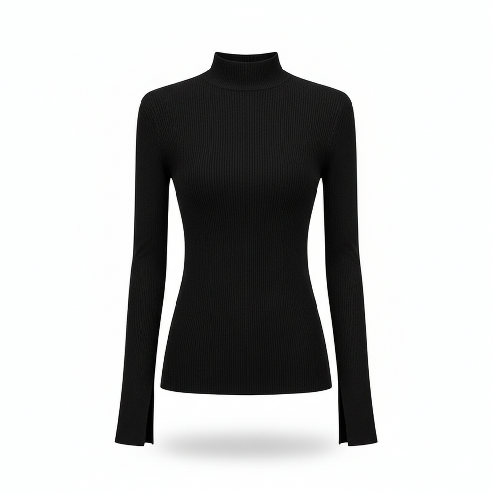 2025 אביב סתיו חורף חדש צווארון צווארון תחתון חולצת נשים דקה חצי גבוהה צווארון סרוג