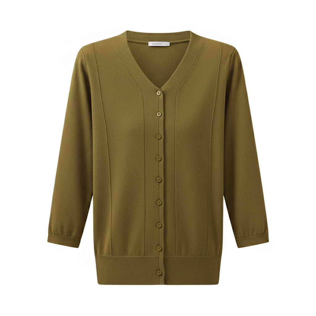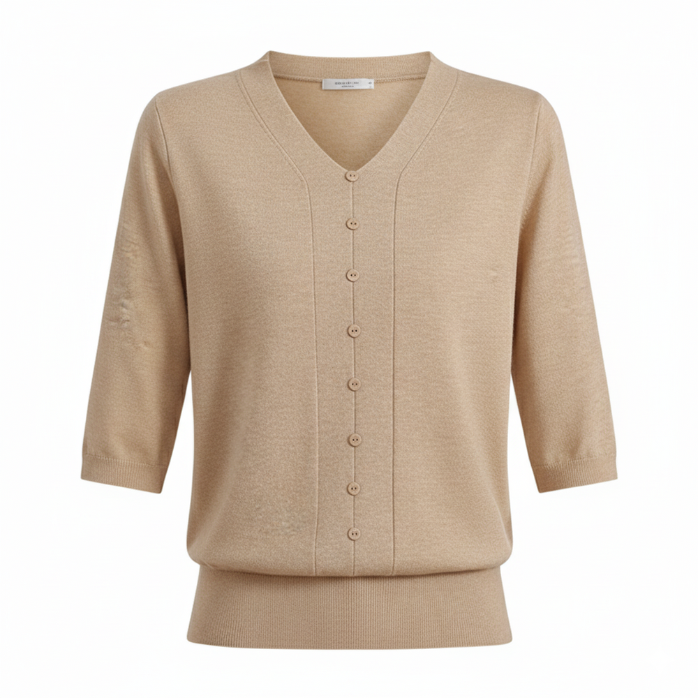 סריג קרמל עם כפתורים וגזרה קלאסית