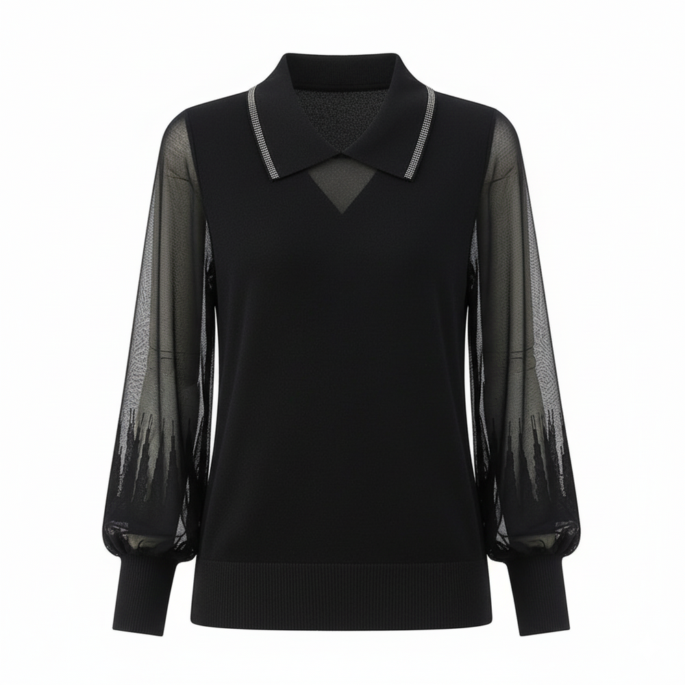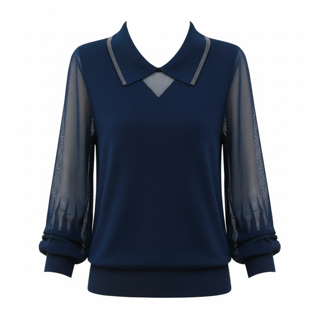 חולצה אלגנטית כחולה עם שרוולים שקופים וצווארון עדין