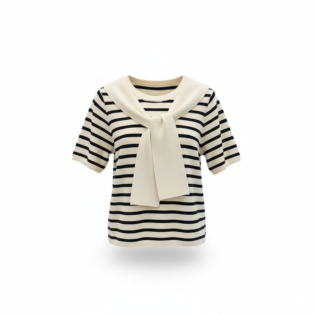 חולצת פסים קלאסית עם קשירה אלגנטית