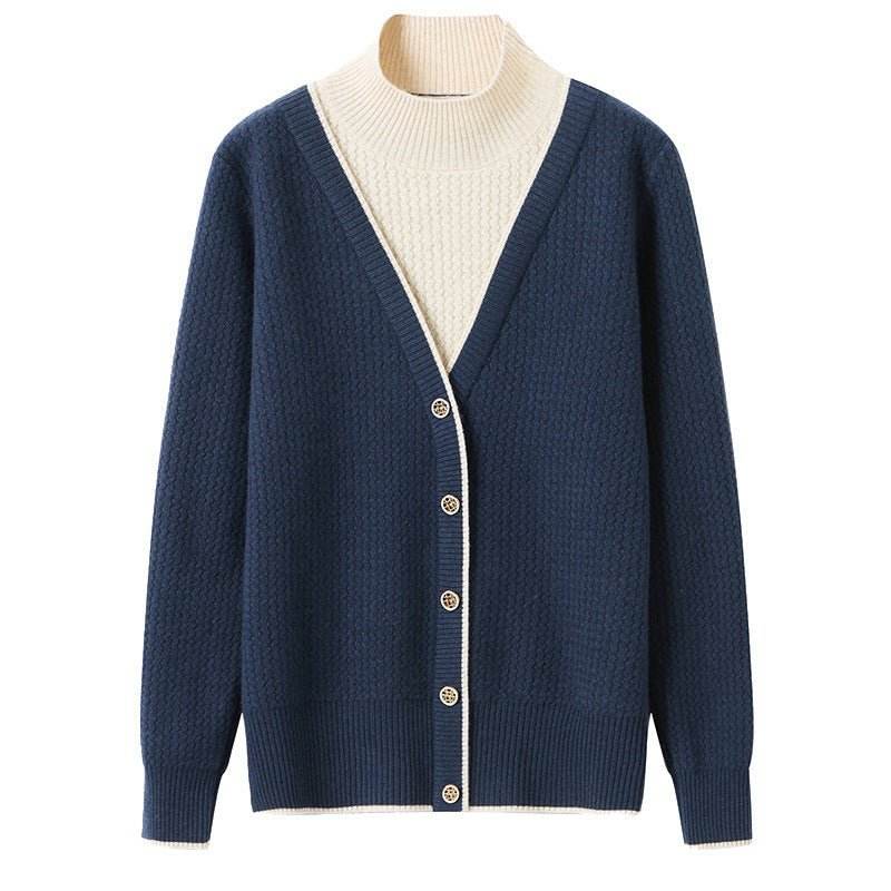 קרדיגן כחול כהה במראה שכבות משולב, עם סריג פנימי בצבע שמנת – פתרון מושלם למראה מהודר, מתוחכם וקליל בלי מאמץ.