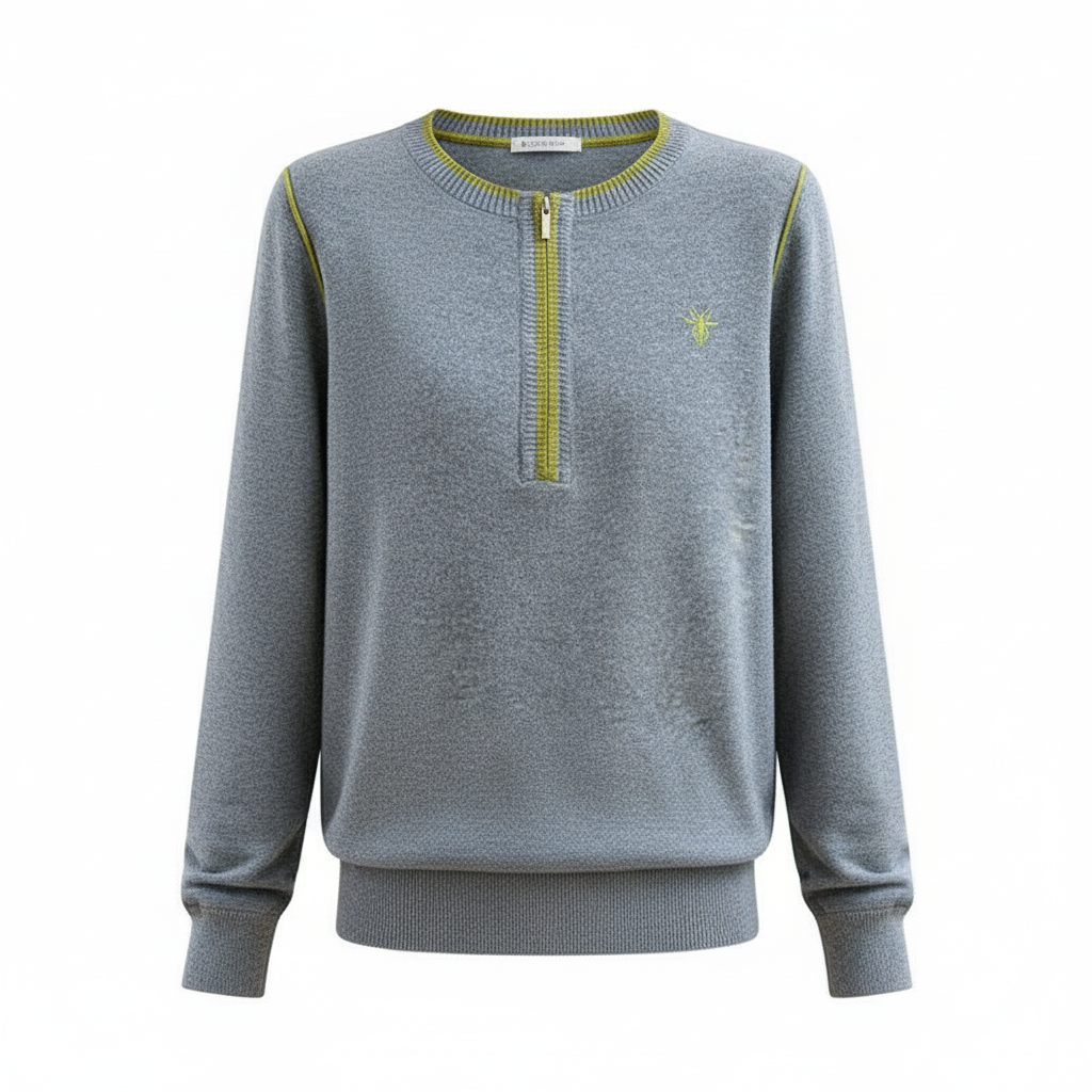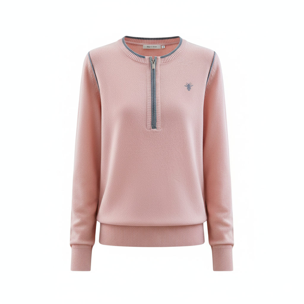 סריג רך בגוון ורוד פודרה עם רוכסן דקורטיבי ומגע אלגנטי של אפור, משדר קלילות ונשיות מתוחכמת. מתאים למראה יומיומי או למשרד – כשהנוחות והסטייל נפגשים בהרמוניה מושלמת. 🌸