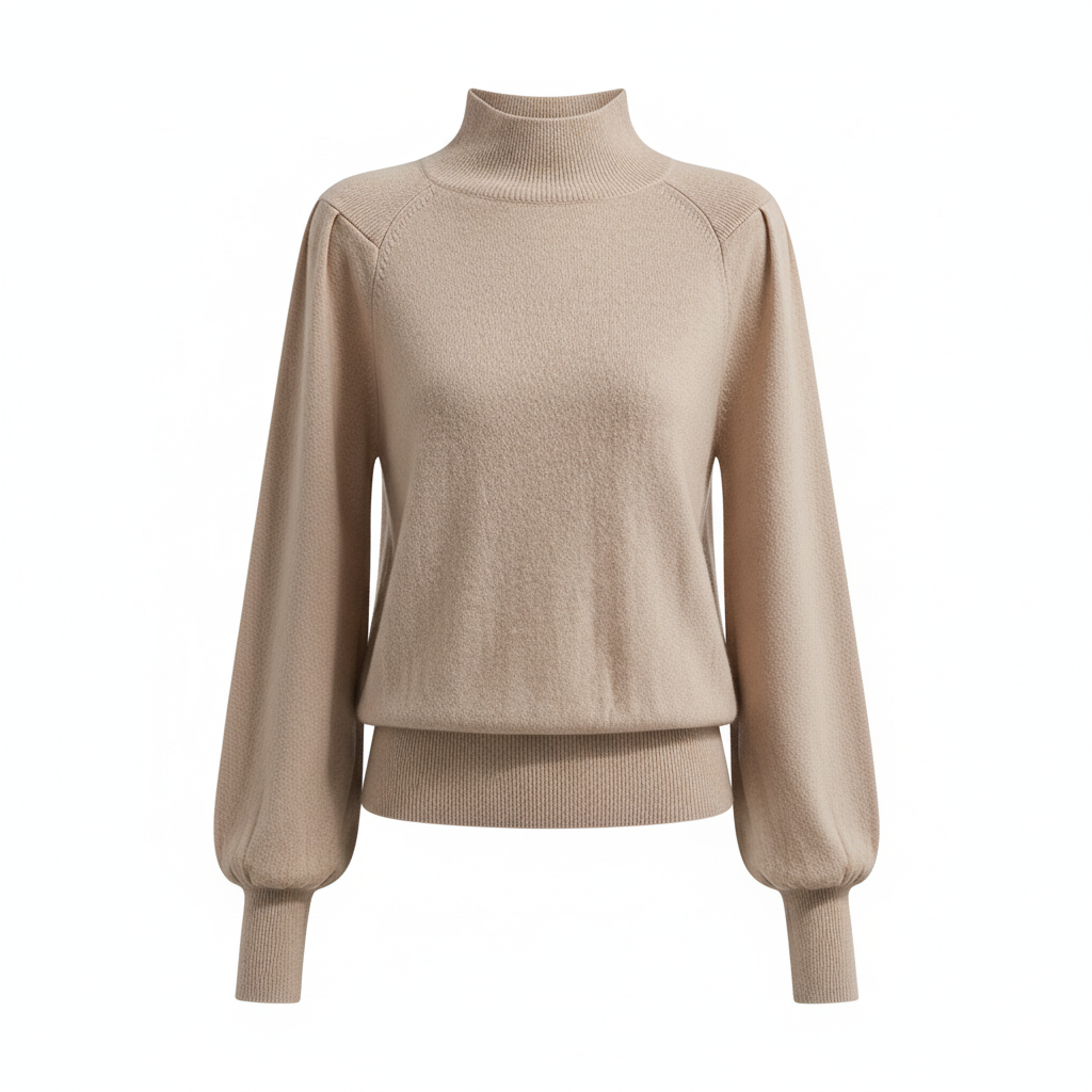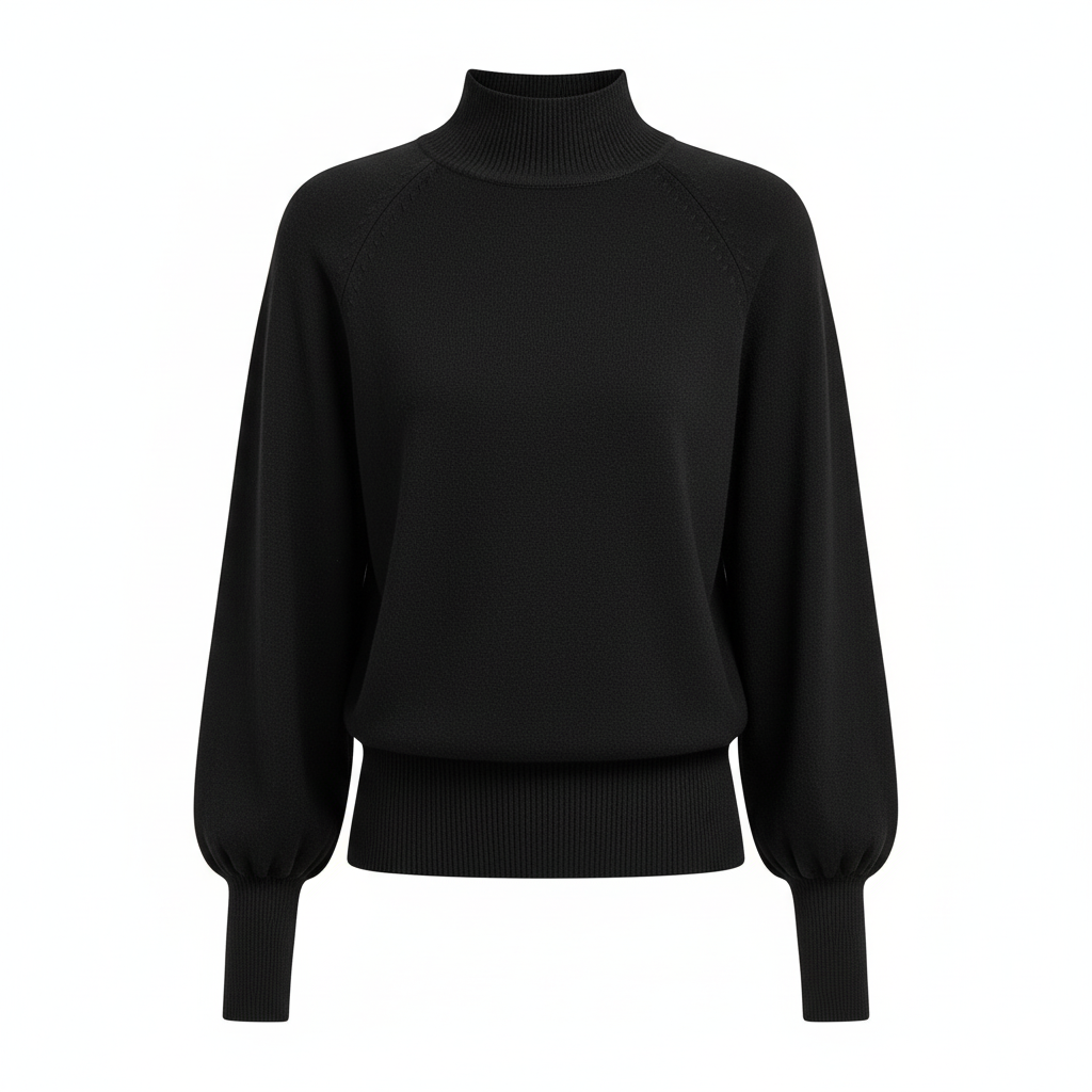 סריג אלגנטי ורך במרקם יוקרתי, עם שרוולים תפוחים עדינים וסיומת צמודה למראה נשי ומוקפד – מתאים לכל עונה ולכל הופעה.