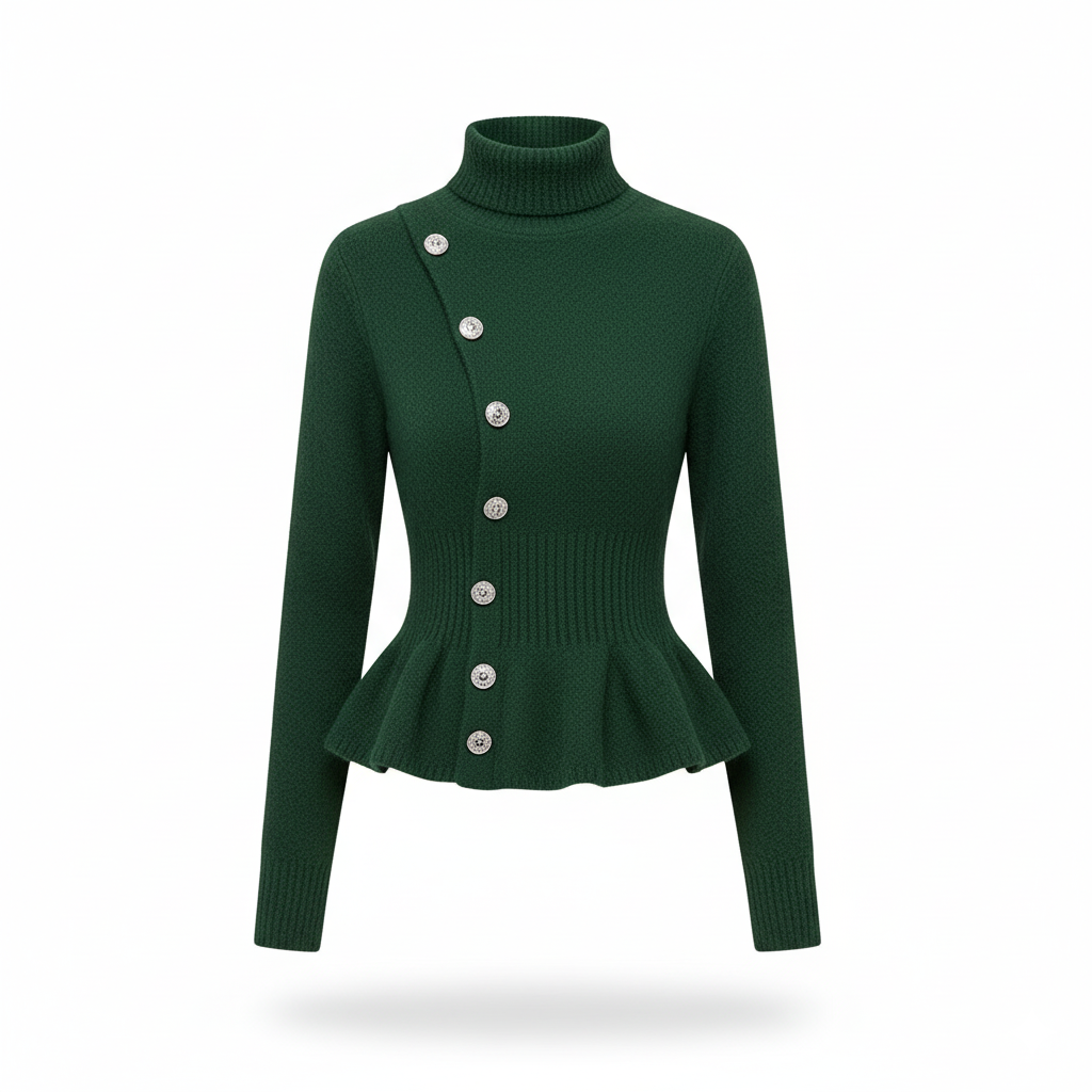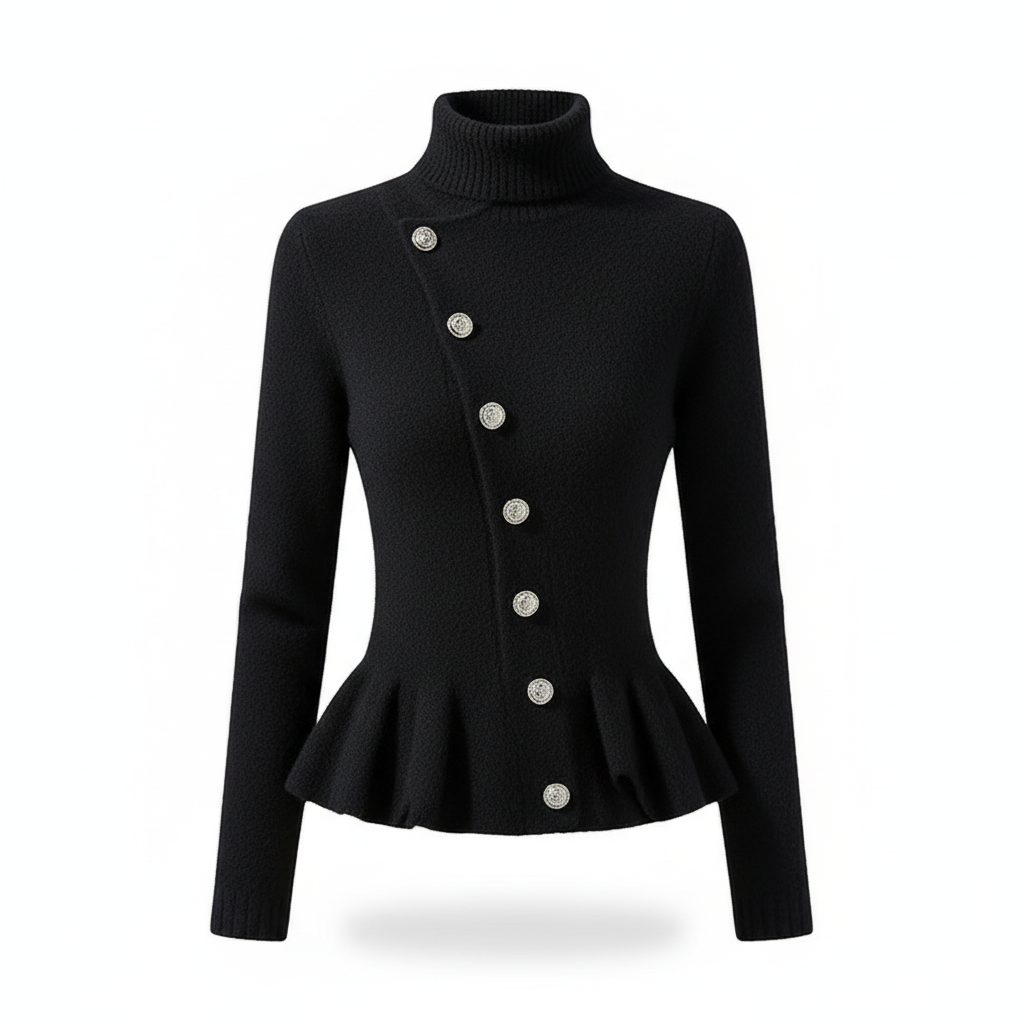 סריג חמים עם כפתורים ייחודיים ונקודת הדגשה במותן – מראה אלגנטי, קלאסי ונשי המעניק תחושת יוקרה ונוחות.