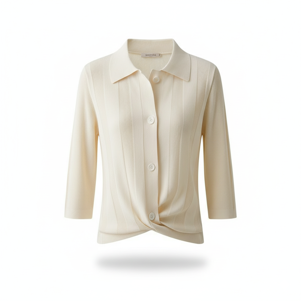 חולצה סרוגה בצבע כחול עמוק עם כפתורים קדמיים, עיצוב מחמיא ומרקם איכותי המעניקים מראה מתוחכם ונשי לכל הופעה. 💙✨