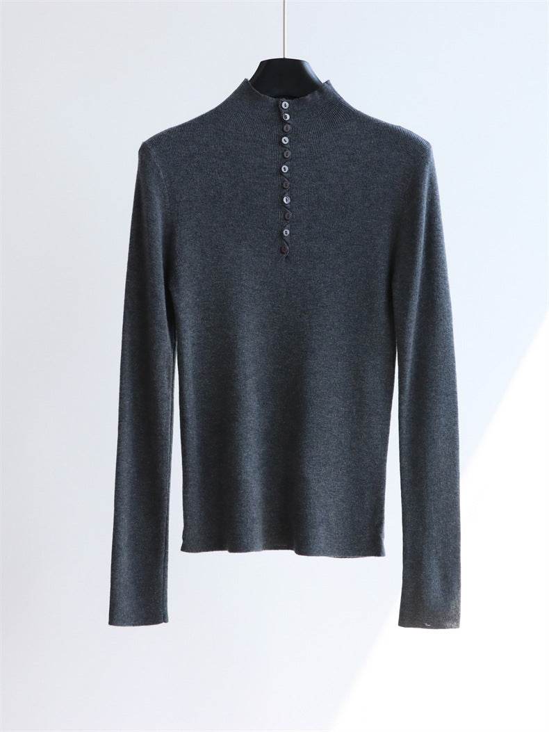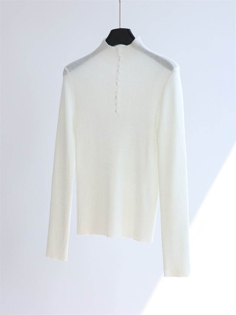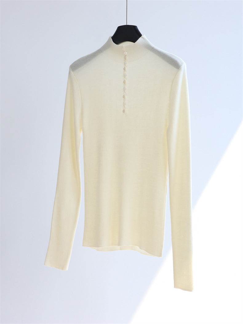 חולצת צמר דקה בגוון שמנת עם כפתורים אחוריים