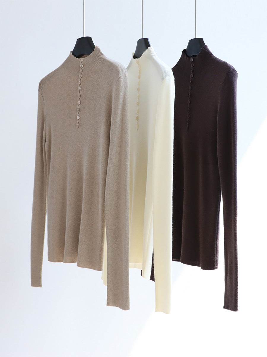 חולצת צמר דקה בגוון שמנת עם כפתורים אחוריים - Nessiha